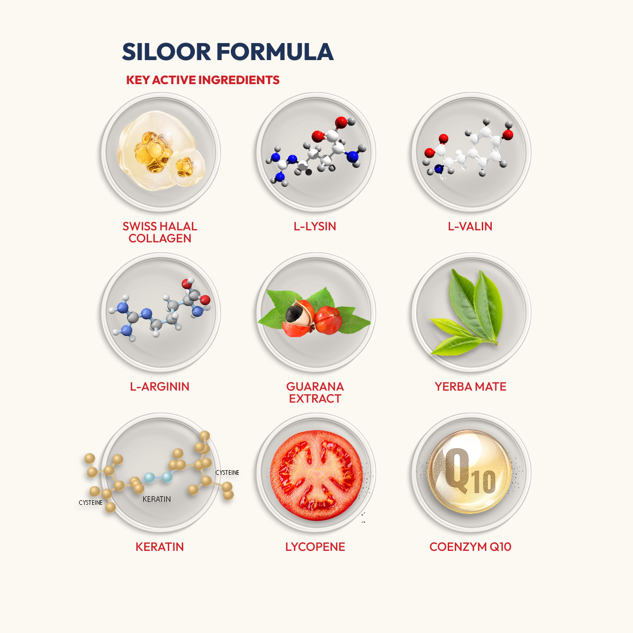Crafted with premium amino acids (L-lysine, L-valine, L-arginine), Swiss halal collagen and Cynatine HKS for muscle and anti-aging support. Enhanced with natural vitamin C, CoQ10, guarana, yerba mate and hyaluronic acid for energy and vitality.