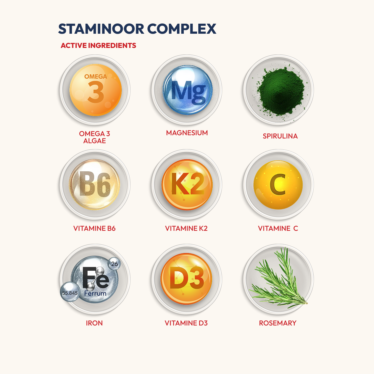Formulated with omega-3 algae, L-theanine and magnesium for stress resilience and mental clarity. Enhanced with vitamin D3K2, spirulina, rosemary and essential B vitamins (B6, B12) plus vitamin C, calcium and iron for comprehensive energy and vitality support.