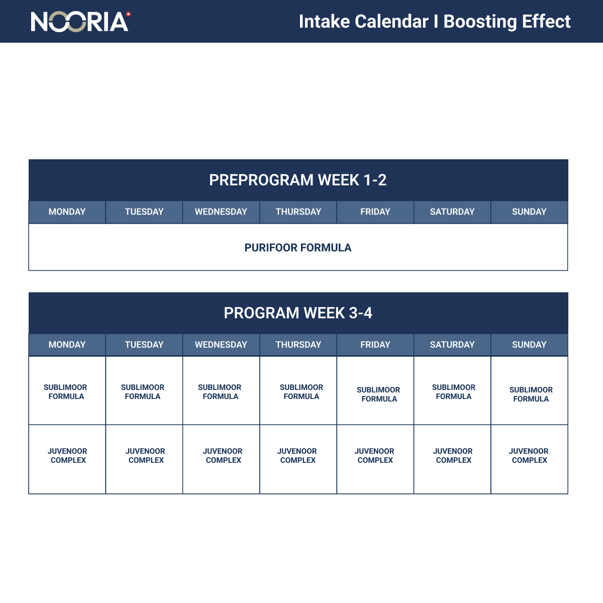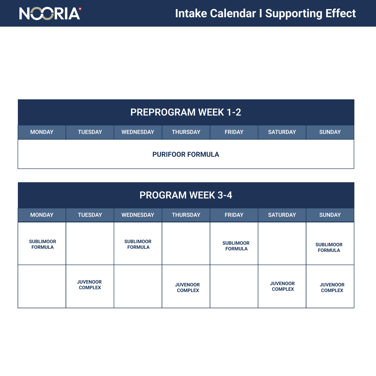 Take one pouch of Juvenoor Complex daily. Please note that each pouch contains five pills, which should be taken with a sufficient amount of water.
