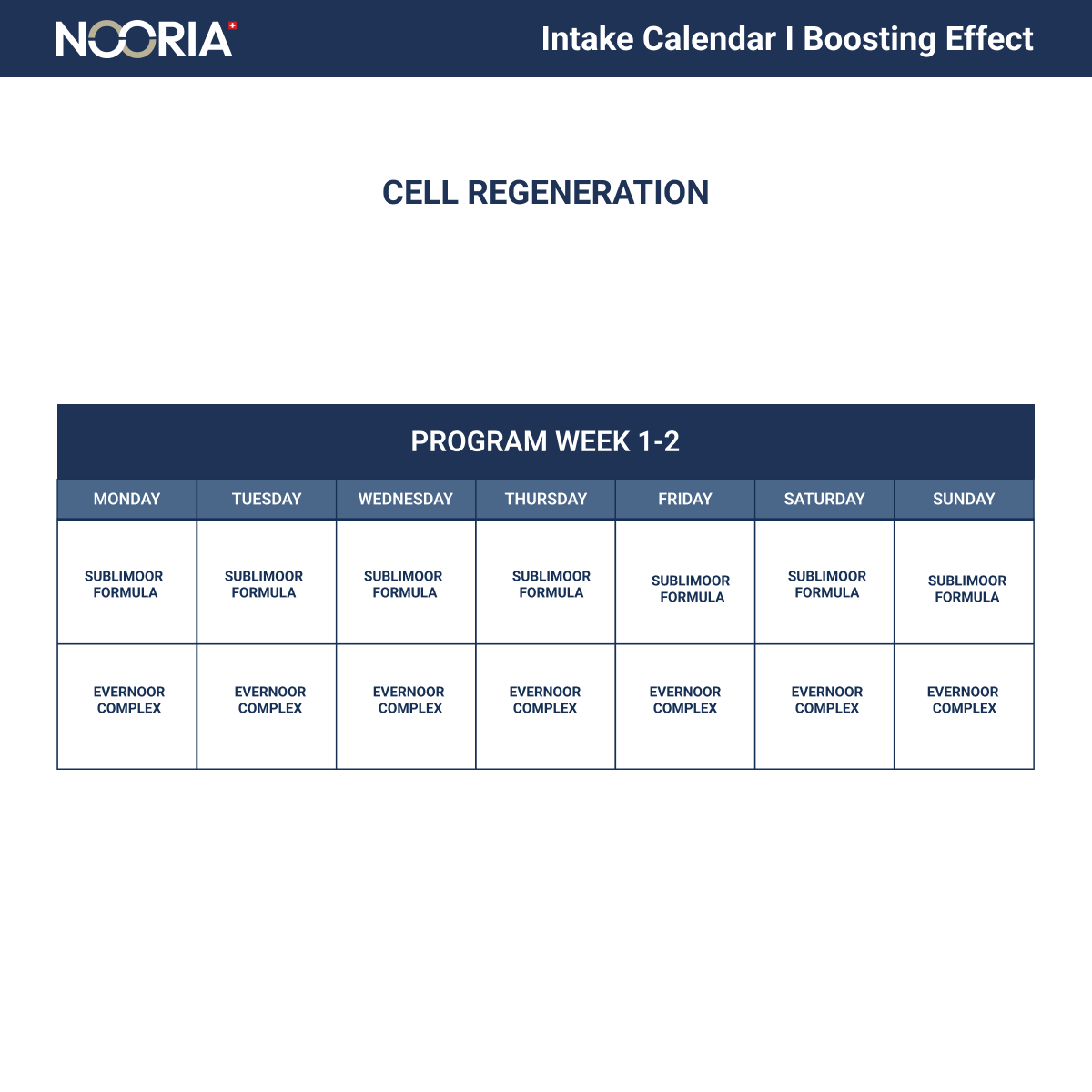 Evernoor Complex: Take one pouch daily. Please note that each pouch contains five pills, which should be taken with a sufficient amount of water.