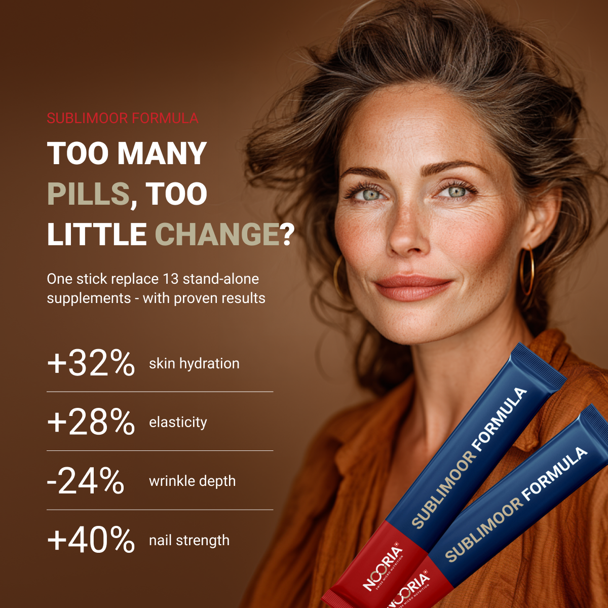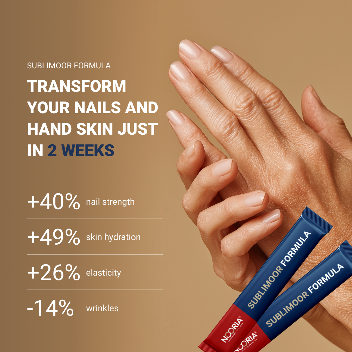 Our research highlights Sublimoor’s wide-reaching benefits: it reduces wrinkles, enhances skin texture and hydration, promotes hair growth and nail strength, and supports healthy aging.