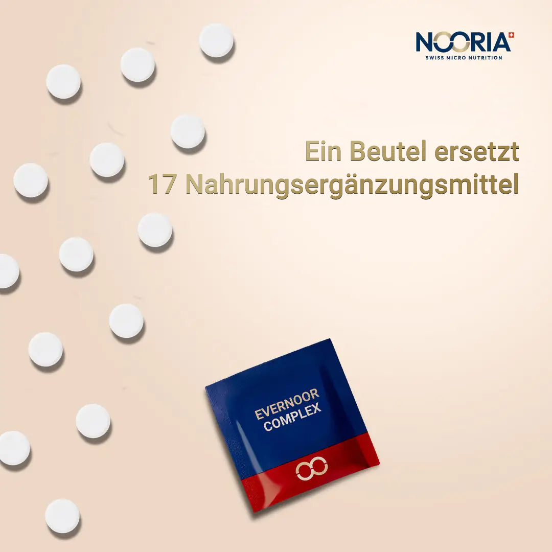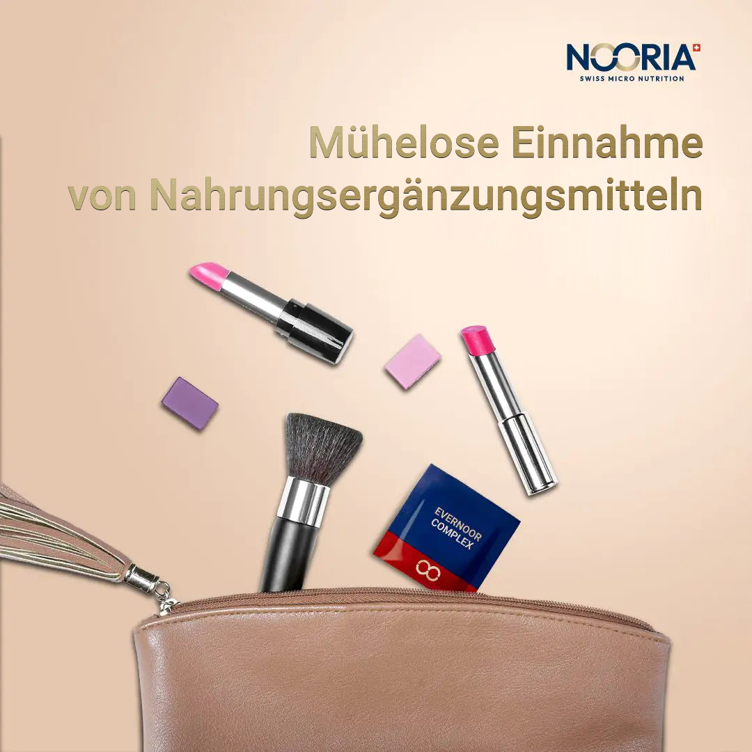 Genau. Unsere Rezepturen sind so konzipiert, dass sie sich gegenseitig unterstützen und verstärken. Das System ist bewusst optimiert, um die tägliche Anwendung zu reduzieren und gleichzeitig sichtbare Ergebnisse zu erzielen. Für eine ausgewogene Kur wählen Sie ein Nahrungsergänzungsmittel aus der Nooria Formulas-Linie und eines aus der Nooria Complexes-Linie. Wir empfehlen, mit der Purifoor Formula zu beginnen, da diese den Körper optimal auf die Nährstoffaufnahme vorbereitet.